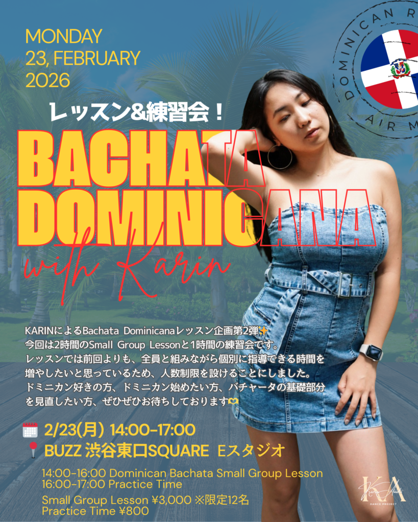 Karinによるドミニカンバチャータ企画第2弾✨前回はたくさんのご参加ありがとうございました!嬉しいことに「また企画して欲しい!」とお声をいただき第2弾を企画することといたしました👏みんながドミニカン楽しんでくれてほんっとうに嬉しい😍😍